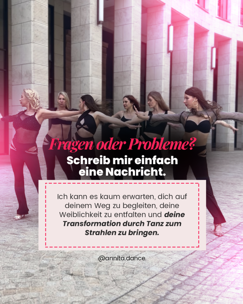 Ich kann es kaum erwarten, dich auf deinem Weg zu begleiten, deine Weiblichkeit zu entfalten und deine Transformation durch Tanz zum Strahlen zu bringen.
